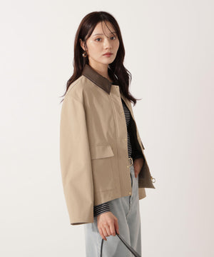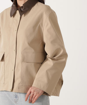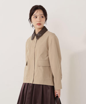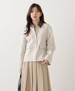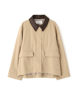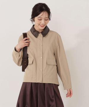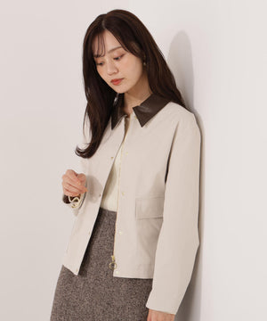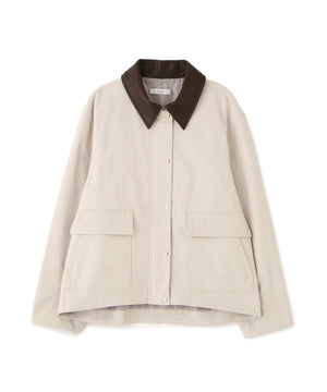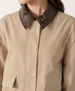 優しい手触りとマット感のあるツイル素材。襟はフェイクレザーを使用しています。
