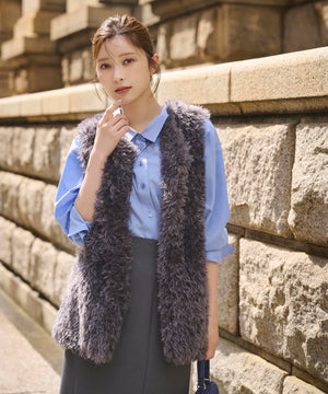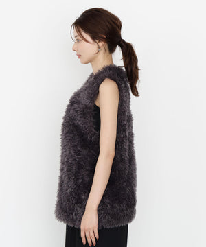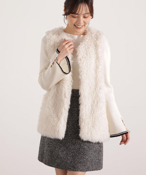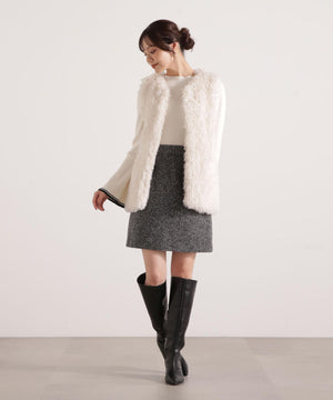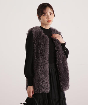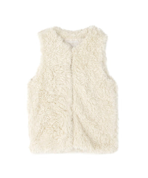 くるくるとしたプードルフェイクファーが目を引くジレです。今年トレンドのレイヤードコーデにぴったりな1枚。ブラウスやシャツは勿論、Tシャツ、ワンピースと合わせて、カジュアルダウンするのもお勧めです。季節を先取りしながら、冬まで様々なアイテムとコーディネートが楽しめます。