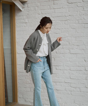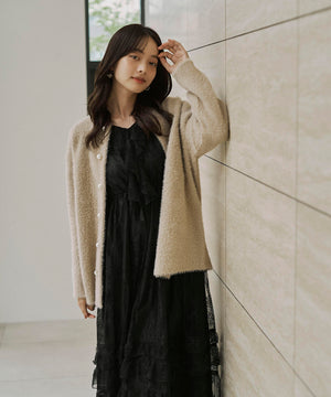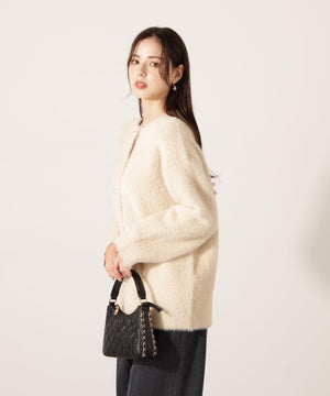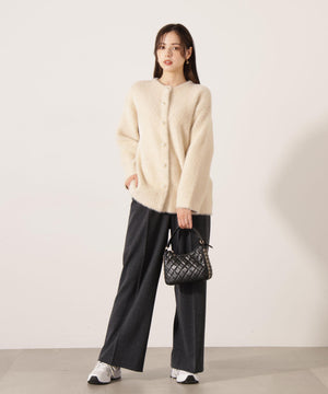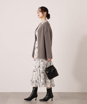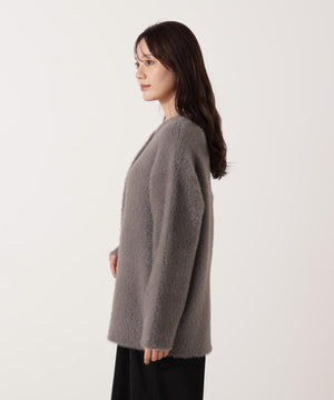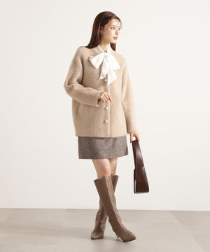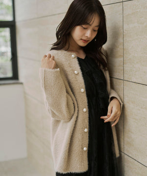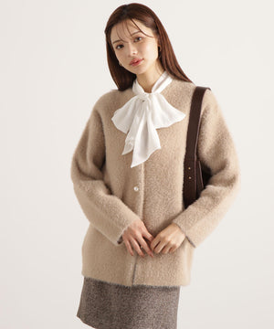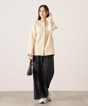昨年ご好評いただいたウォーム感のあるフェザージャコットです。カーディガンとしてもコート感覚としても着用できる嬉しい1着。大きめのパール調ボタンが上品な印象を与えてくれます。フェミニンもカジュアルスタイルにも相性バツグン。通勤からオフの日まで幅広いシーンに活躍します。