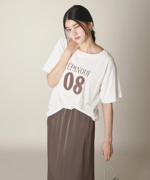 トレンドのナンバリングTシャツをフェミニンな雰囲気にデザインした1枚。やや大きめのサイズ感に、ニュアンスカラーのフロッキープリントがオトナ可愛いポイントです。※ロゴの意味、花が咲いたように、開花した。