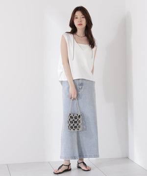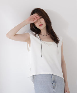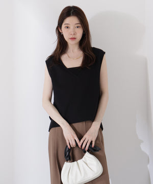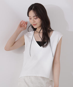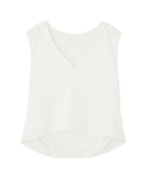 大人カジュアルな雰囲気を引き立てるカットソーです。デコルテをシャープに見せるVネックが涼しげな印象。深いVネックなので、お持ちのベアトップなどのインナーを合わせるのがおすすめです。後ろはタックを入れて程よいフォルムを出しているので、パンツと合わせても女性らしいコーディネートが叶います。