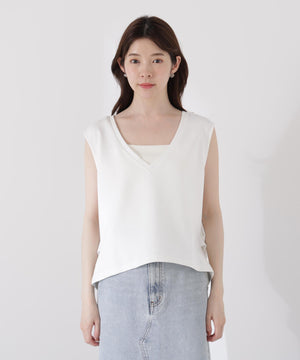 <ウォッシャブル>Vネックフォルムカットソー