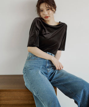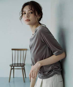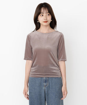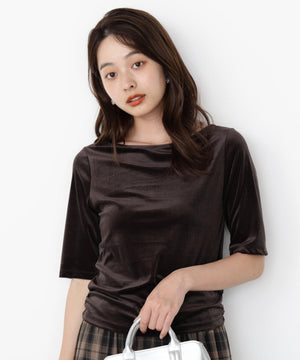 <ハンドウォッシャブル>シアーベロア5分袖トップス
