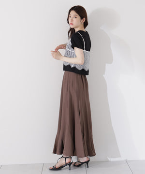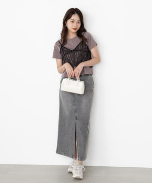 繊細なレース素材のキャミソールがセットになったカットソーです。レースキャミソールとカットソーはニュアンス感のある微配色なので、カジュアルすぎず大人っぽい雰囲気です。レースキャミソールの肩紐は長さ調節可能。このセットで旬なレイヤードスタイルが楽しめます。