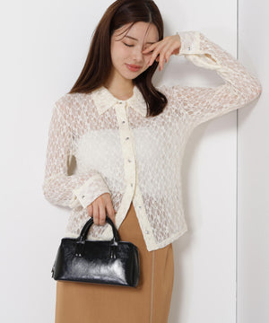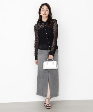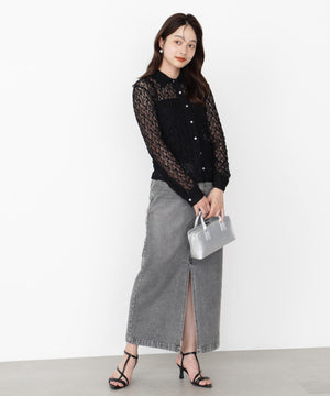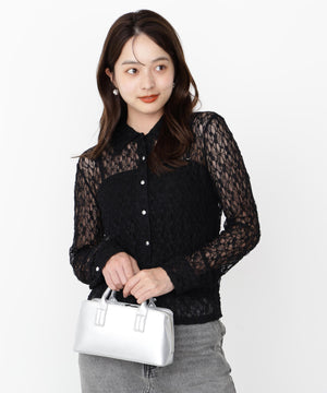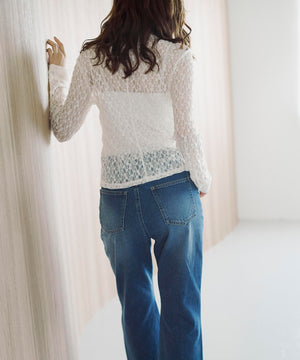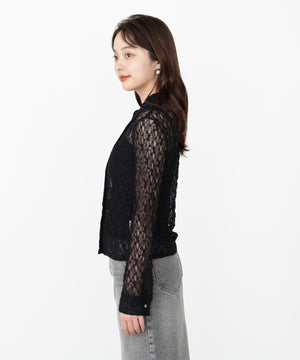 やや細めのシルエットに仕上げたストレッチレースブラウスです。適度な透け感が上品で女性らしいデザインです。インナーはお持ちのベアトップやキャミソールを合わせていただくのがおすすめ。デニムアイテム、キレイめスカートやパンツにも着用いただけます。
