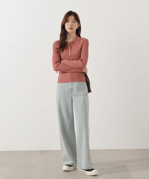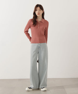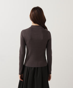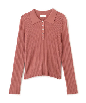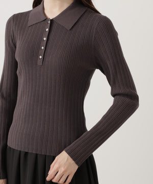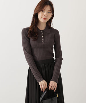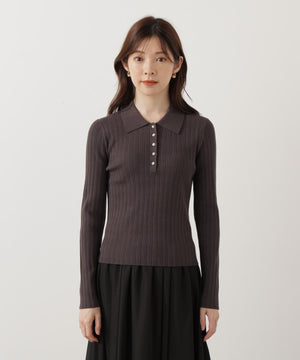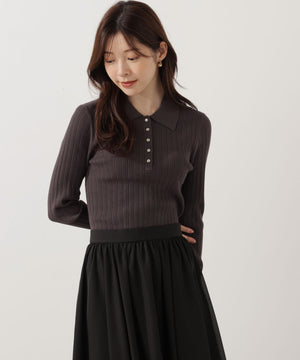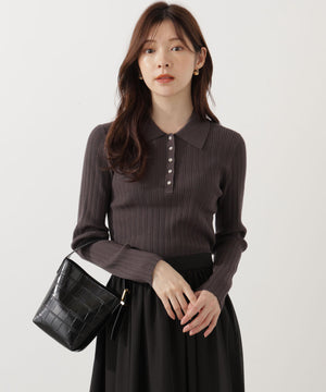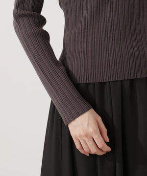 ランダムリブが大人っぽいポロネックニットです。襟ぐりが詰まりすぎず、キレイ見えを叶えます。フロントの小さいメタル釦がポイント。スカートもパンツも合わせやすいデザインです。