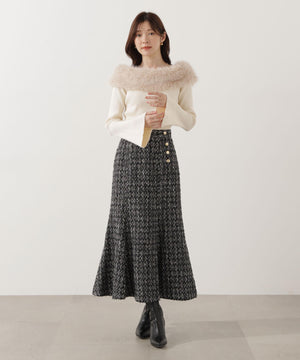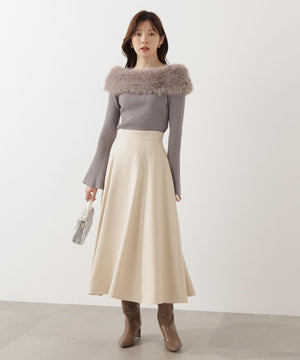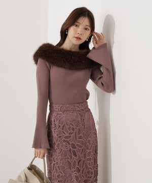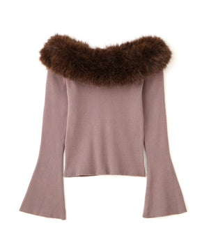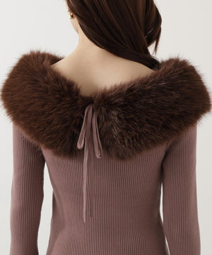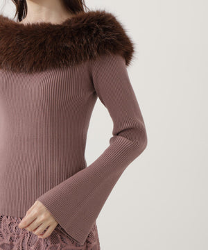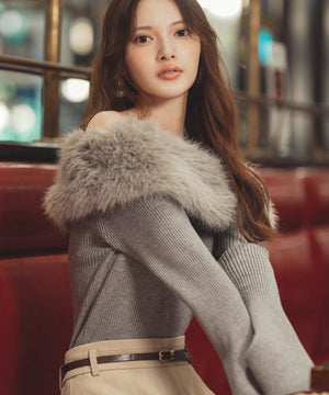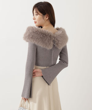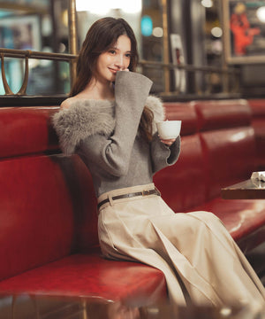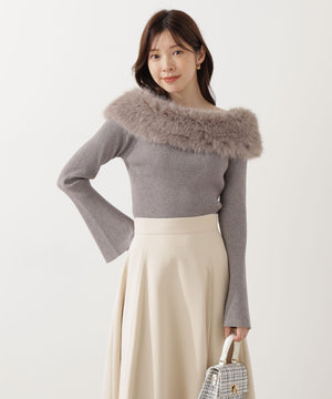 取り外しできるフェイクファー付きオフショルニットです。バックリボンが愛らしく、フェイクファーは後ろに余裕を持たせているので動きやすくなっています。フレアスリーブデザインで手元に抜け感をプラス。フェミニンなスカート、カジュアルなデニムパンツとも着用いただけます。