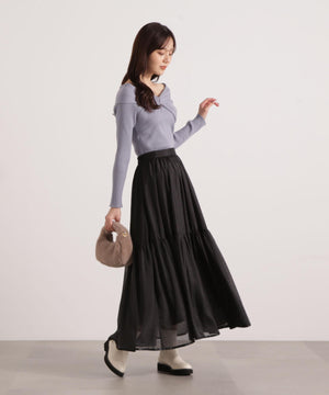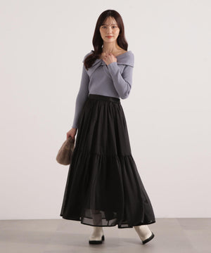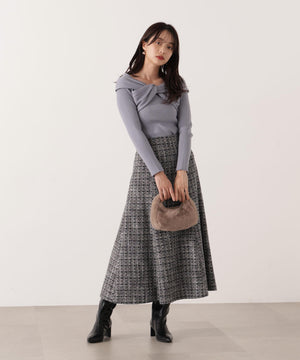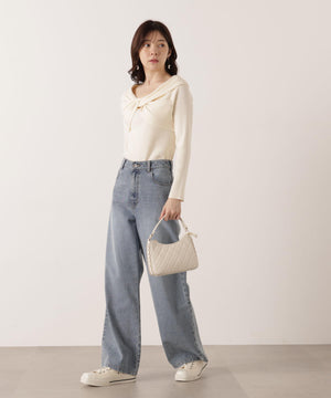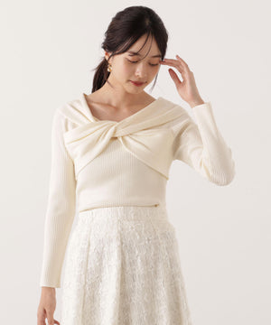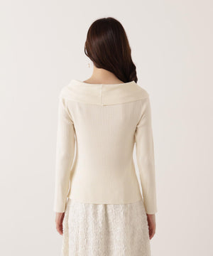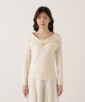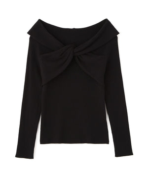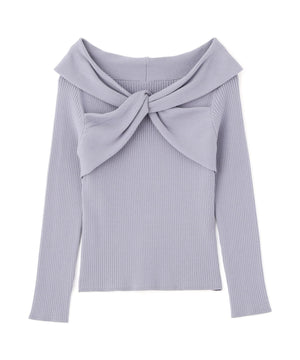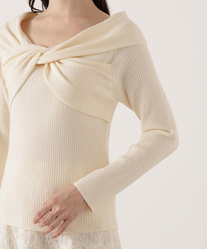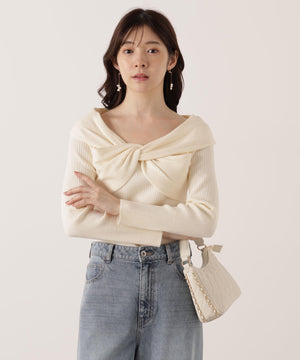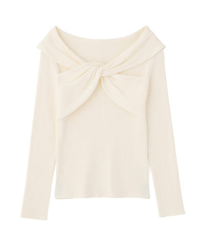 リボンオフショルリブニット