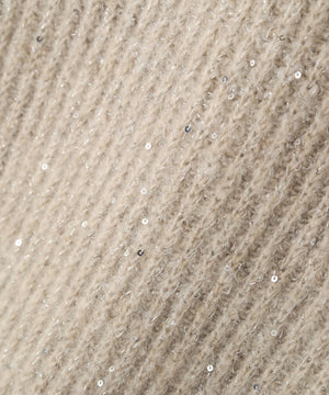 スパンコール、ラメ糸入りの暖かみのある糸を使用しています。