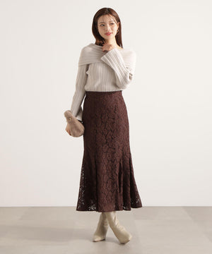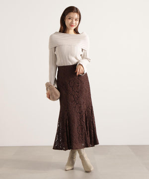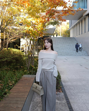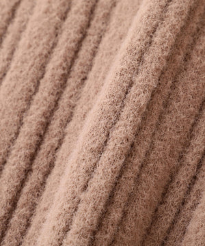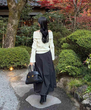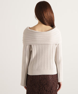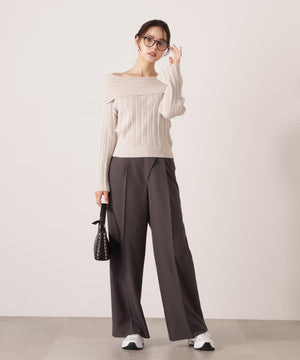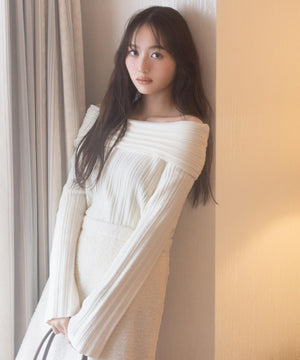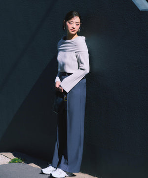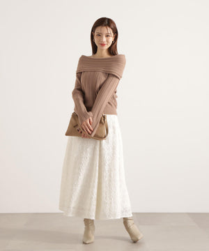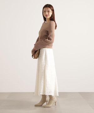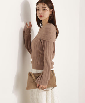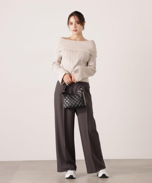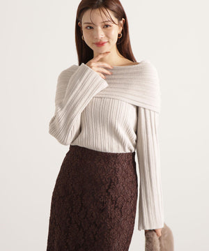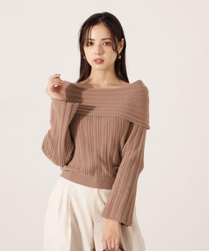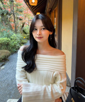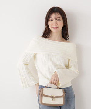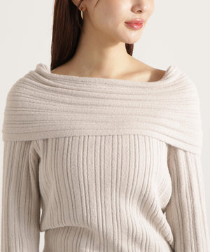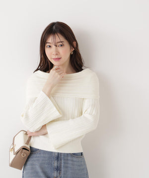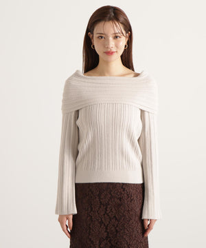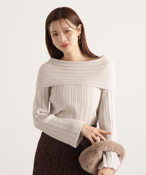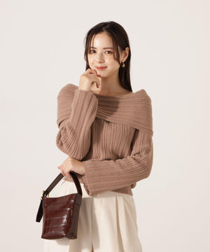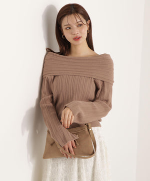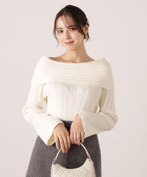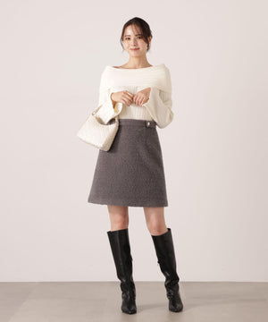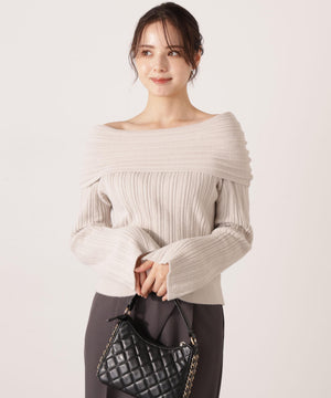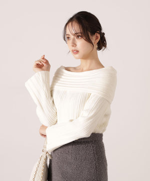 毛足の短いフェザー糸を使用したショートシャギーのオフショルニット。厚みを抑えつつ暖かみのある編地が特徴です。ランダムリブ編みで大人っぽさもプラス。スカートはもちろん、スラックスなど大人っぽいパンツスタイルにも着回せます。
