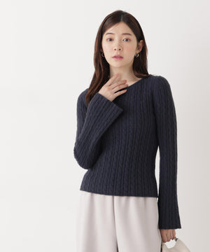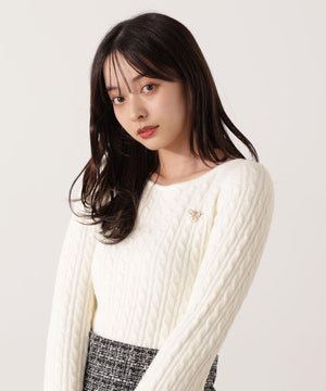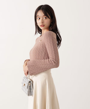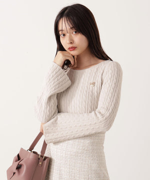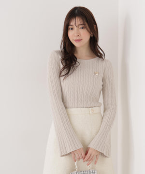 チャーム付きミニケーブルニット