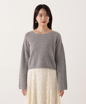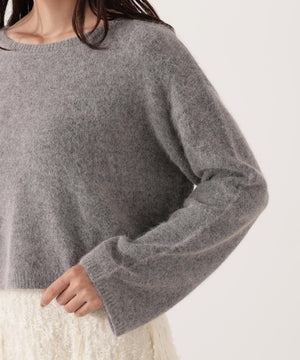 FOX混の柔らかい肌触りと暖かみがあり、これからの季節に活躍できるニット。シンプルなデザインの短丈シルエットなのでフェミニンスタイルと相性バツグンです。レーススカート、ナロースカート、ツイードスカートとも着回せます。