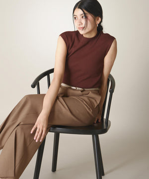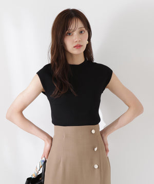 後ろネックに並べたキラキラ釦がかわいいリブニット。肩幅を広めに取ることで上品に見せながら、動きやすくなっています。単品使いはもちろん、キャミワンピースのインナーとしても着回せます。