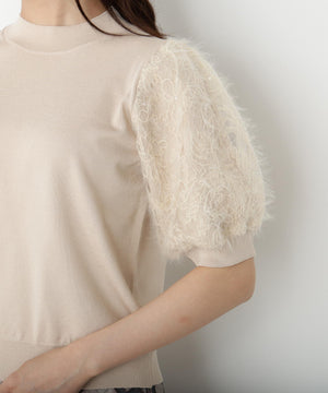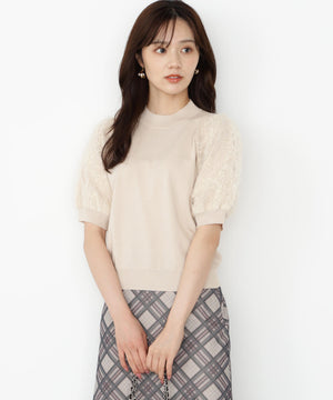 レースドッキングスリーブニット【ベージュ:official site限定】