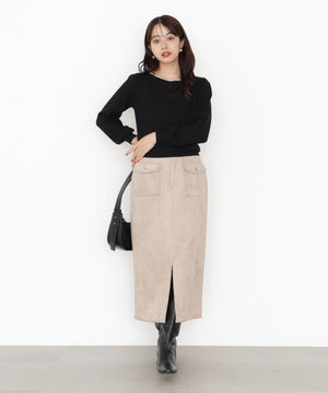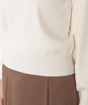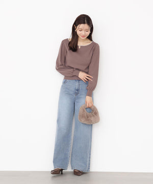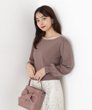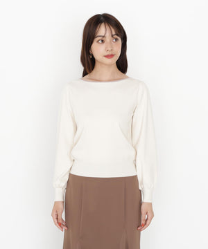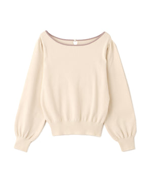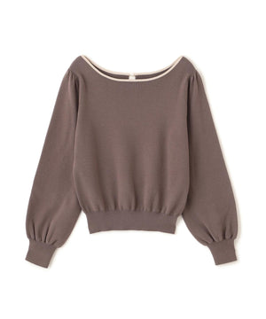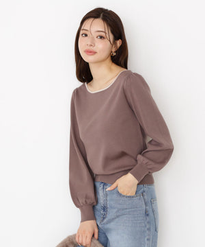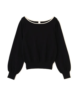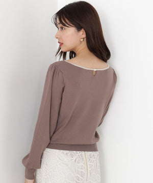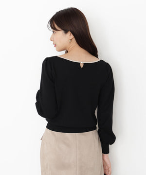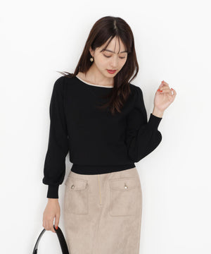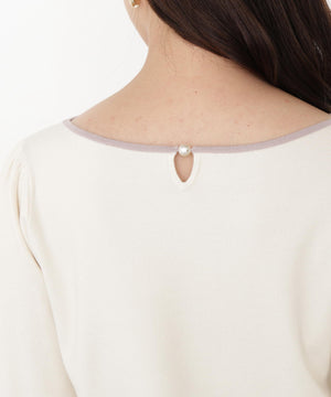 襟ぐりに配色ラインを効かせたオトナ可愛いニットです。デコルテラインをキレイに見せてくれるデザイン。襟のパール調をポイントに、その日の気分や合わせるボトムスによって前後2wayで着用いただけます。