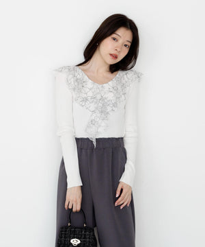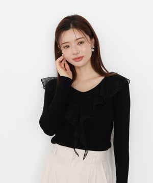 レースフリルニット