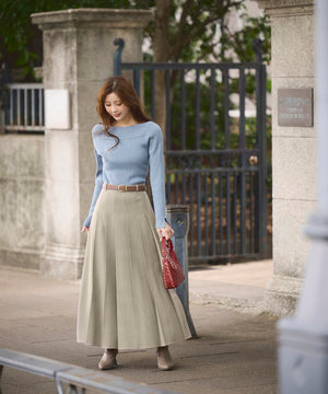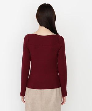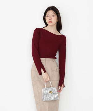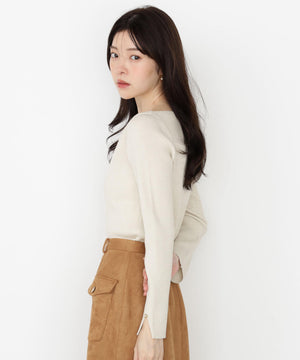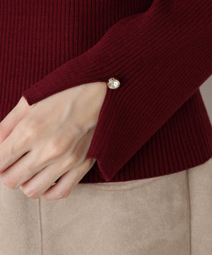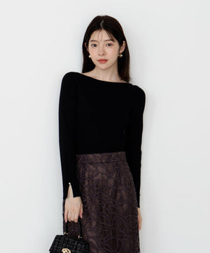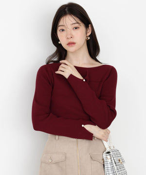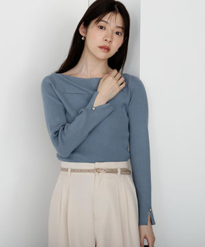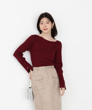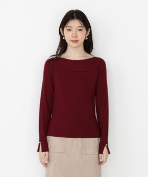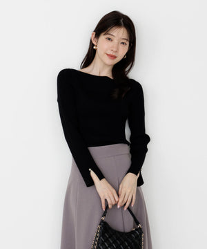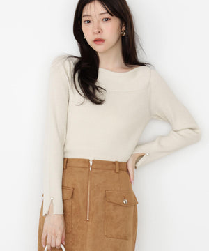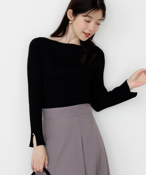 昨年人気だったアイテムをアップデート!デコルテが綺麗に見えるボートネックのリブニットです。胸の上に切り替えを入れることで視線を引き上げてくれるので、スタイルUPを狙えます。今年はスリット入りの袖にきらっとボタンをアクセントにプラスしています。