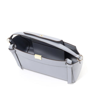 甘さをおさえたサイドリボンディテールがオトナな雰囲気のバッグ。マチ幅があるほどよい横長シルエットで必需品がスマートに収納できます。フラップに付けたマグネット釦で簡単に開閉できる仕様。肩掛けと斜め掛けができるショルダーは取り外しできます。