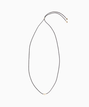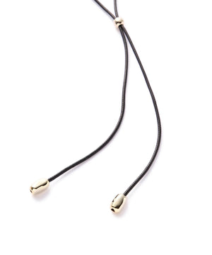 きらっと光るゴールドカラーのパーツを付けたコードネックレス。コード先にもパーツを付けており、バックスタイルで揺れるデザインが女性らしいアクセントに。ボールパーツを上下にスライドするとコードの長さを自在にかえられます。