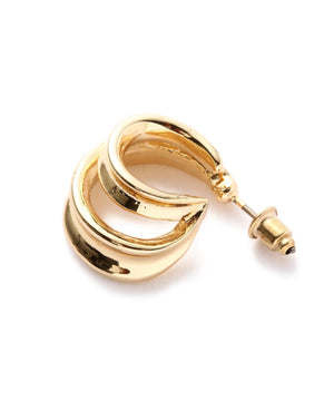 立体的なフォルムを作るダブルフープピアス。大小のシンプルなフープを2本重ねたデザインです。大人っぽく洗練されたデザインは、オンにもオフシーンにも活躍できるアクセサリーです。