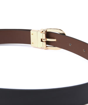 きらっとバックルが品の良いアクセントになるミドル幅のベルト。使いやすいリバーシブルカラーもポイントです。シンプルなデザインなのでコーディネートに取り入れやすく、メリハリ感ときちんと見えも叶えてくれます。