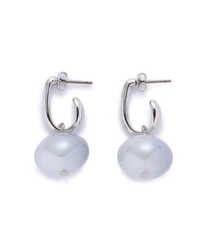 ぽってりとしたドロップパーツ付きピアス。ニュアンスフープとちょこんと付けたドロップパーツの組み合わせが、耳元で艶めきと存在感をプラス。デイリースタイルに取り入れやすいアクセサリーです。