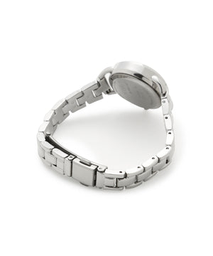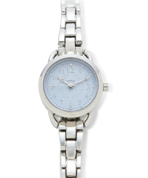 上品な雰囲気のラウンドフェイスウォッチ。身につけるだけで女性らしい手元に見せてくれます。ブルーカラーの文字盤は秒針つき。オンにもオフシーンにも活躍してくれるシーズンレスなアイテムです。5気圧、日常生活強化防水となります。