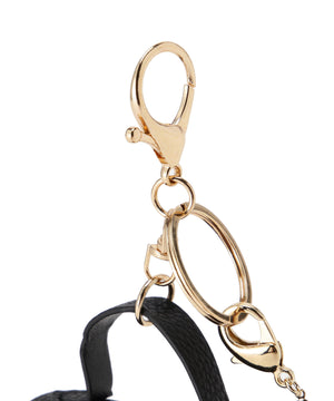 お持ちのバッグに付けるだけで旬なアクセントになるチャーム。クラシカルなミニバッグに飾りのパール調ストラップが付いているレディなデザインです。ミニバッグにはちょっとした小物が入るサイズ感。お持ちのバッグに装着しやすいナスカン付きです。