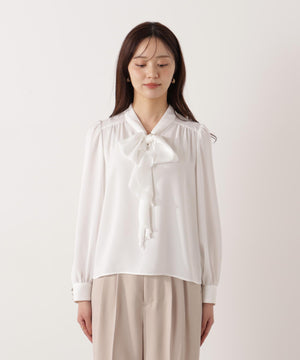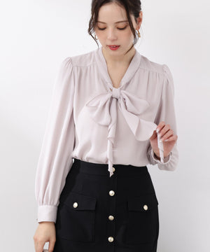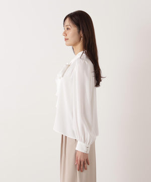 <ウォッシャブル>ラッフルリボンブラウス
