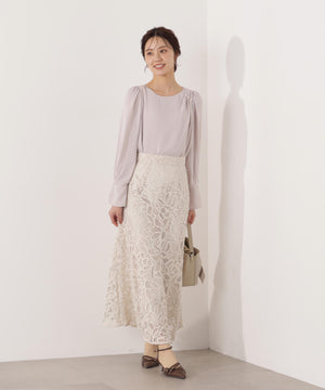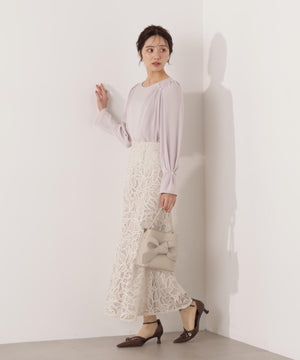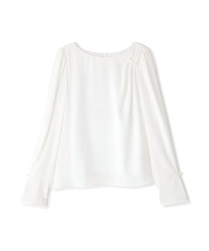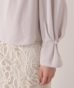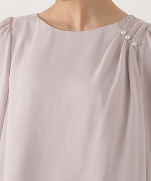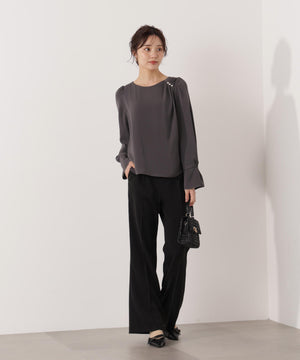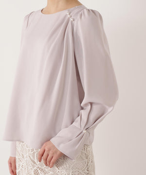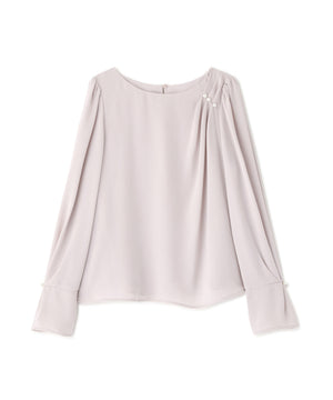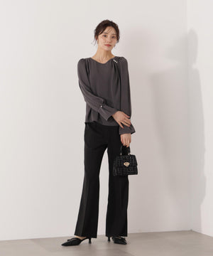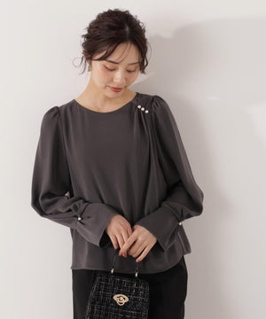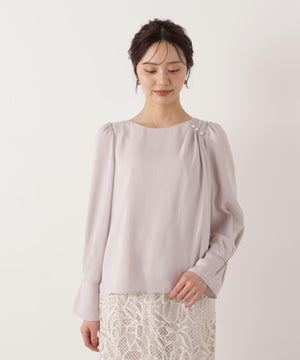 パール付きニュアンスネックブラウス