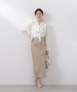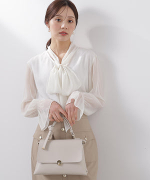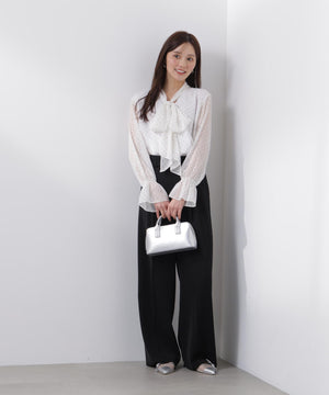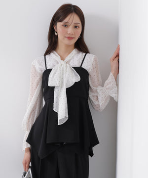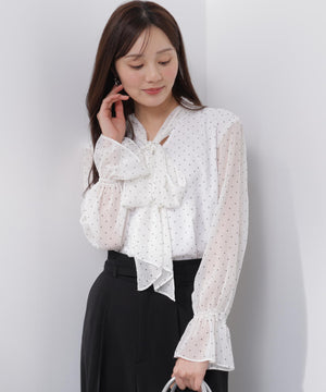 人気のビッグリボンブラウスが登場!春らしいドット柄がクラシックな雰囲気を叶えてくれます。身頃は裏地が付いているのでデイリーに使いやすいです。手首をきゅっと締めるスリーブデザインと、ボリューム感のあるビッグリボンが、女性らしいスタイリングを演出してくれます。