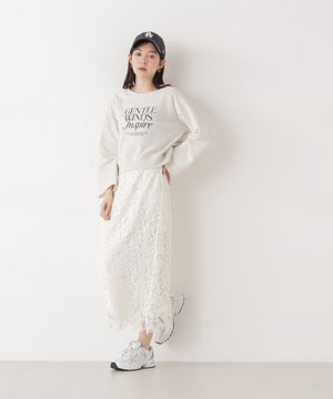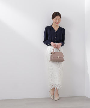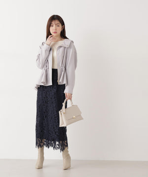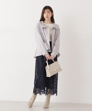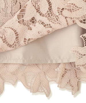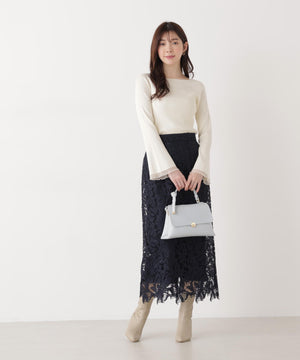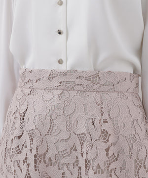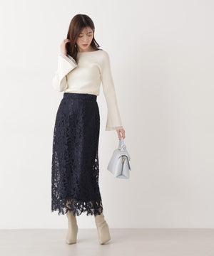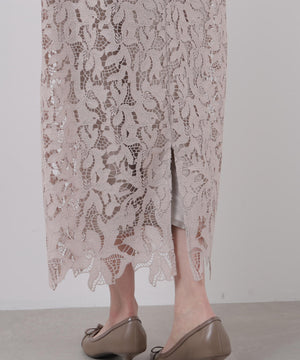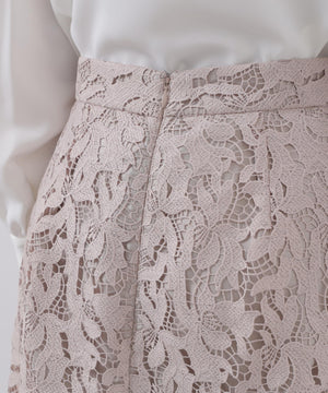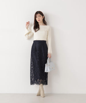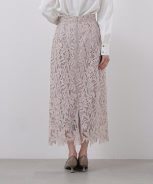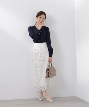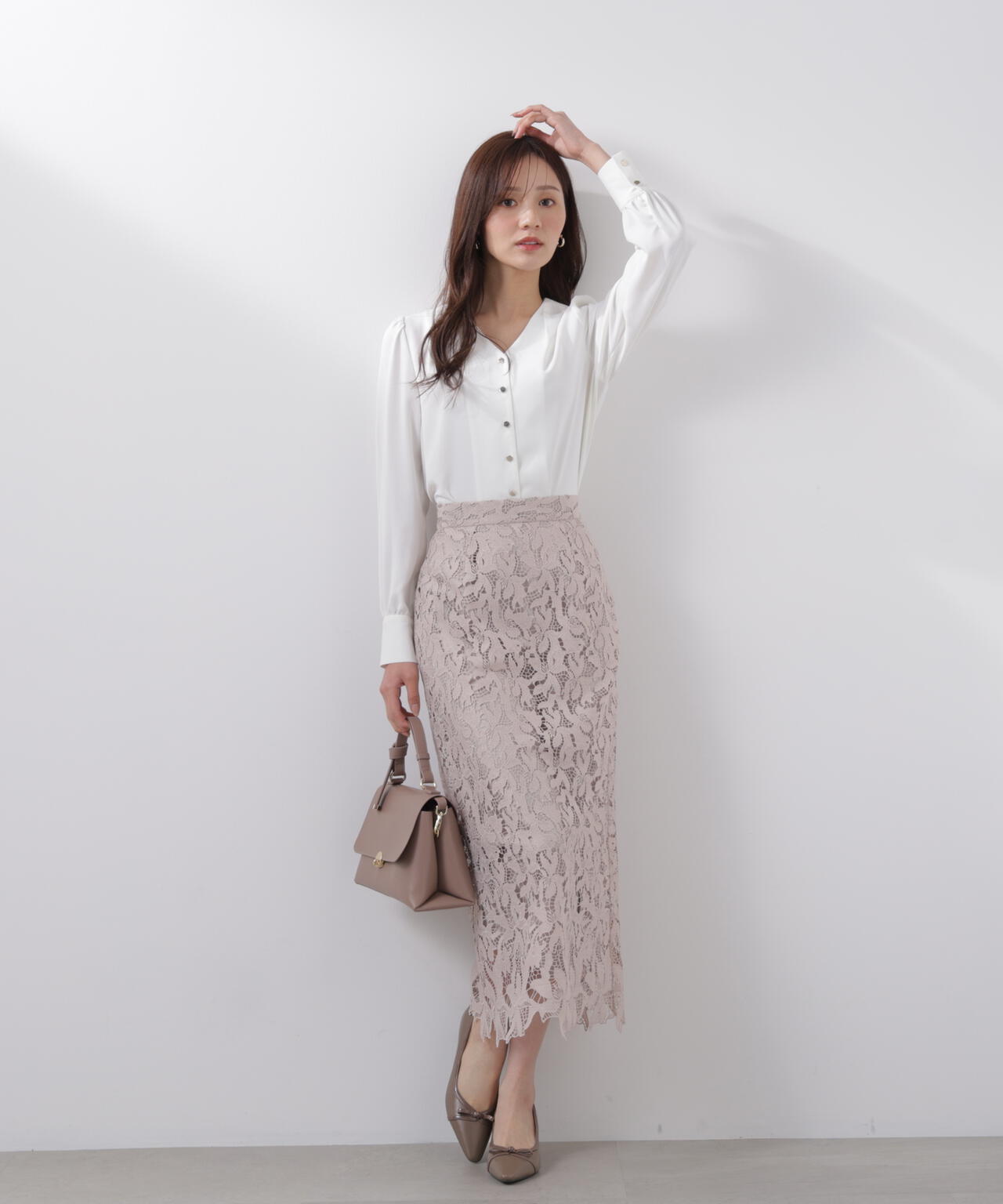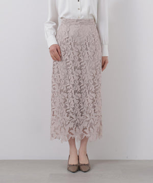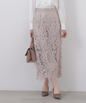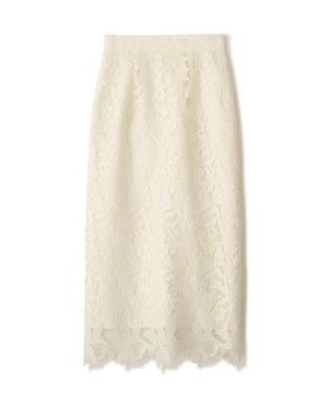 春らしいケミカルレースを使用したオリジナル柄のタイトスカート。花柄の繊細な女性らしさを残しつつ、程よくシャープな印象を加えて大人の可愛さを演出。体のラインを拾いすぎない上品なタイトシルエットです。爽やかで春らしいエクリュカラーとベージュ、大人っぽくシャープなネイビーの3色展開です。