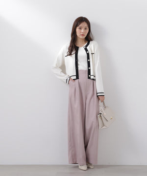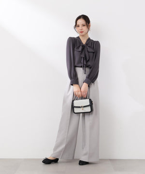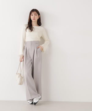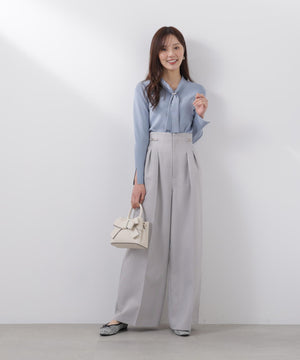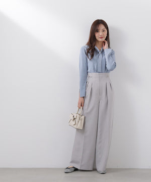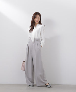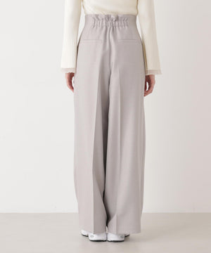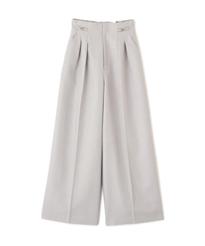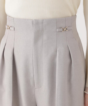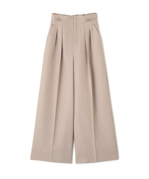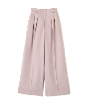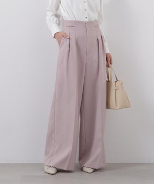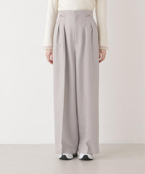ウエストサイドのビットがポイントのワイドパンツ。ハイウエストですっきり見せ、裾にかけてワイドシルエットになっています。後ろウエストはゴム仕様ではき心地が良く、様々な体型にフィットするデザインです。