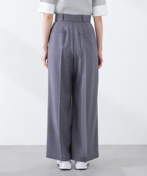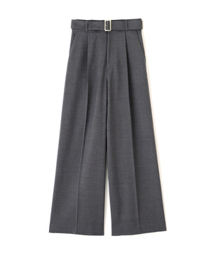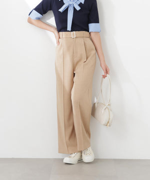 <ウォッシャブル>ベルト付きタックワイドパンツ