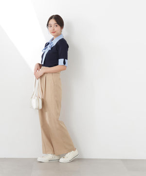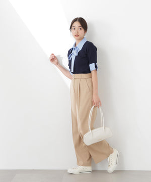 太ベルトがポイントのワイドパンツ。ウエストを細く見せてくれる太ベルト仕様で、スタイルアップ効果を期待できます。余裕のあるシルエットとシワになりにくい素材で、デイリーに取り入れやすい1本。コンパクトなトップスと合わせたメリハリのあるコーディネートがおすすめです。