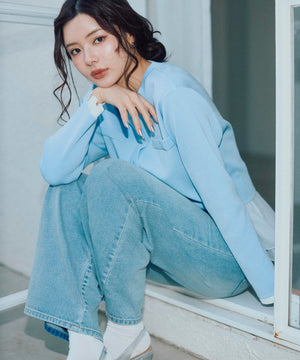 ライトオンスのデニム生地を使用。※こちらの商品は水や雨に濡れたり、汗による湿気、乾燥状態での摩擦により、薄い色の衣服などに色移りする可能性があります。予めご了承いただき、ご使用の際にはご注意ください。