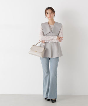 はき心地の良さとキレイなレッグラインを叶える、定番シルエットのフレアデニムパンツ。ストレッチ性のある素材を使用。裾はさり気ないスリット入りです。後ろベルトは「a/mi」のさり気ないプリントがアクセントになっています。