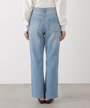 柔らかなライトオンスのデニム生地を使用したストレートデニムパンツ。着心地の良さとペプラムトップスとも映えるストレートラインで、カジュアルさとスタイルアップを叶えてくれます。