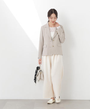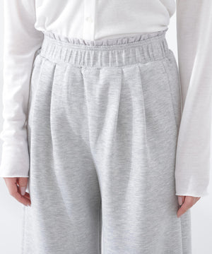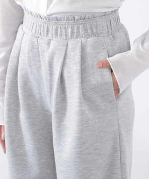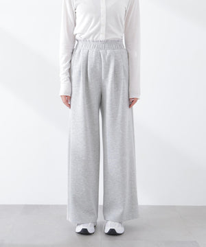 柔らかなジャージ素材を使用したワイドパンツ。リラックス感のあるはき心地ながら脚のラインを拾いすぎず、キレイ見えする1本。タックを入れることで立体感のあるシルエットに仕上げています。レイヤード風のウエストはゴム仕様で快適なははき心地です。