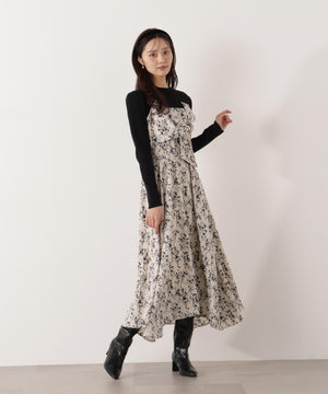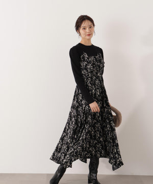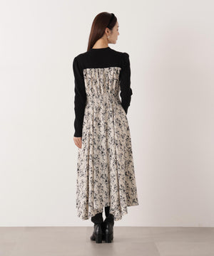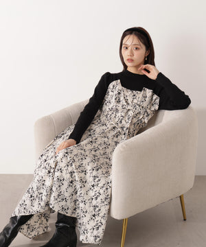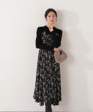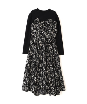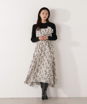 フロントリボン花柄ドッキングワンピース
