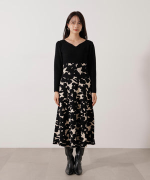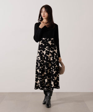 PROPORTIONで大人気アイテム!ジャガードニットワンピースに新色登場。大きめの花柄が目を引くニットワンピースは、ウエストを高い位置から切り替えているため、スタイルアップが狙えます。女性らしいシルエットを叶えながら、デイリーに着られるデザインです。根強い人気のブラック×ブラックと爽やかさと華やさを両立した新色ブルー×ホワイトの2色展開です。