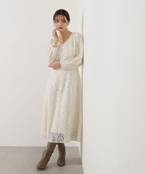 大花柄レースが大人カワイイワンピース。オリジナルパターンで仕上げており、体のラインをキレイに見せながら上品な雰囲気を叶えてくれます。胸下切り替えがレディライクなムードをプラス。後ろウエストはゴム仕様でフィットしながら細見えと動きやすさを両立しています。