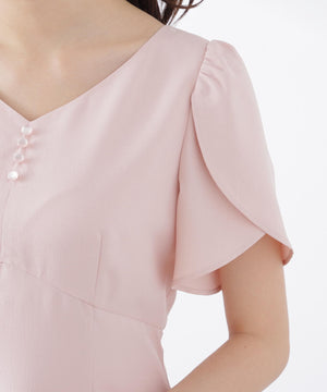 女性らしいスリーブデザインが印象的なワンピース。着用時のシルエットにもこだわり、スタイルアップが叶うデザインです。表面感のある素材で上品さを演出しつつ、デイリーに活躍。長く着用いただける春らしいカラーを揃えています。