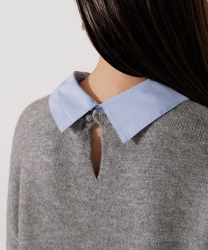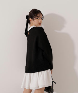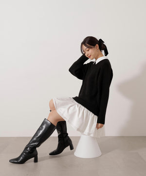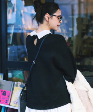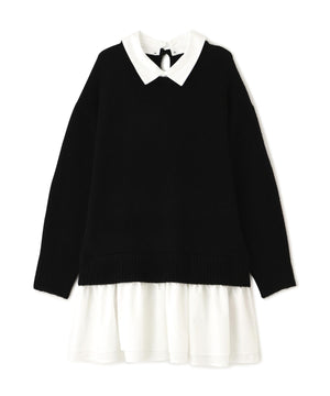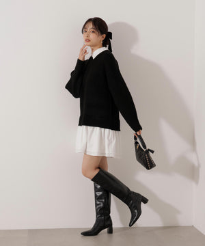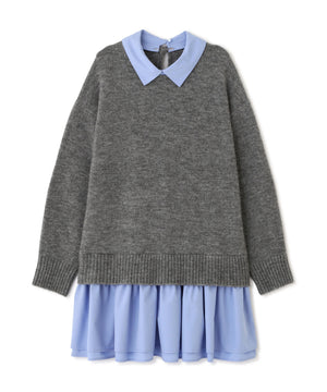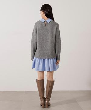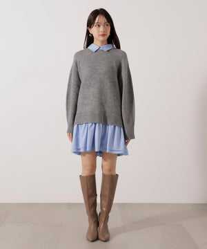 ウォーム感のあるニットとギャザースカートをドッキングしたミニ丈ワンピース。一枚で決まるミニ丈のシルエットが、フェミニンでお洒落な印象に見せてくれます。襟は取り外しできるので、その日の気分やスタイルに合わせて変えられます。
