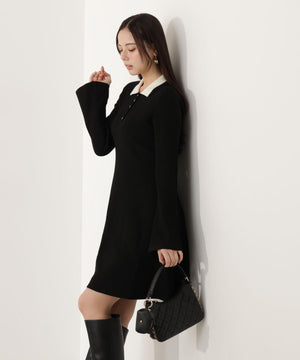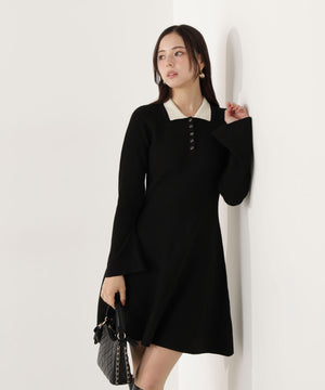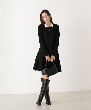 ダブルカラー(2枚襟)の配色が愛らしく、ポロ襟の形状に拘ったニットミニワンピース。着心地の良さとおしゃれを両立しながら、ミニ丈でスタイルアップを期待できます。一枚着るだけで可愛らしさが際立つデザインは、カジュアルからお出かけシーンまで活躍してくれます。
