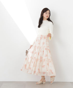 華やかな花柄が目を引くニットドッキングワンピース。タイトなリブニットに、ふんわりとした花柄ティアードスカートをバランス良く組み合わせて、フィット&フレアシルエットを演出。ウエストはゴム仕様で動きやすく、アウターの中でも映える、楽ちん華やかな一枚です。