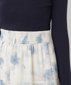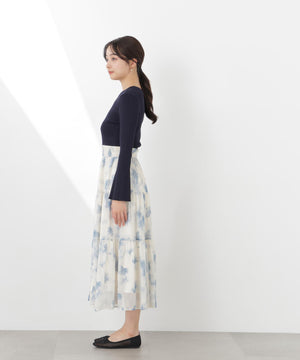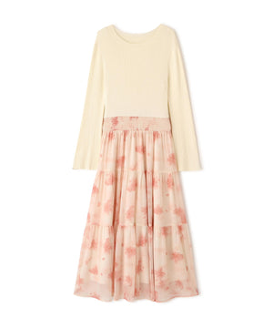 ニットドッキング花柄シャーリングワンピース【WEB・一部店舗限定】