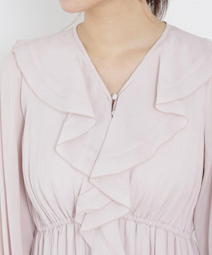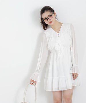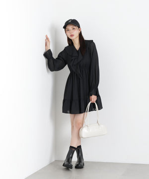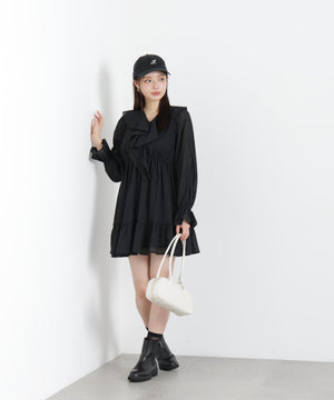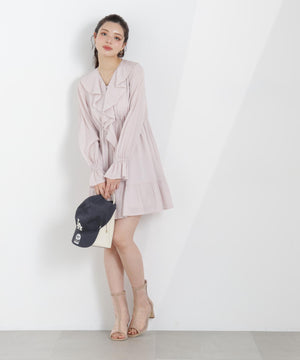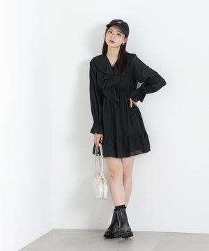 ラッフルが映えるミニワンピース。程よいラッフル感とふわっとした生地が特徴です。着るだけで気分がUPするフェミニンな一枚。ジャケットやカーディガンを合わせたコーディネートも楽しめます。