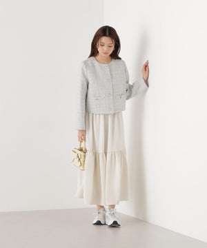 ノーカラーツイードジャケット