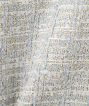ラメ糸入りツイード生地が大人かわいいノーカラージャケット。春らしく華やかなライトブルーと上品なエクリュカラーの2色展開です。控えめなツヤ感のゴールドカラー釦がポイント。フェミニンにもカジュアルにも着回せ、オンオフ問わず活躍してくれます。